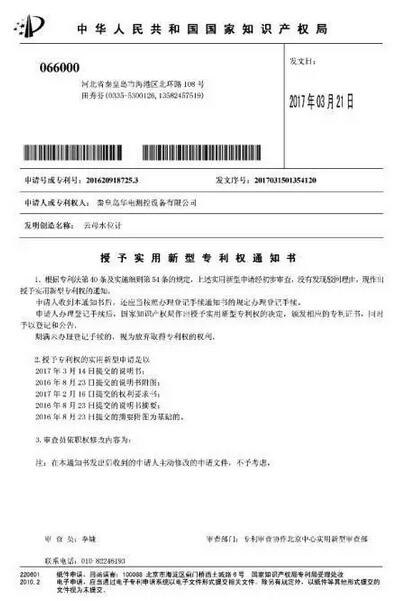 喜訊:秦皇島華電測控設(shè)備有限公司于2016年8月23日提交的“云母水位計(jì)”(專利號:2016209187253)專利已被中華人民共和國國家知識產(chǎn)權(quán)局授予專利權(quán)。此項(xiàng)專利的授權(quán),標(biāo)志著公司已經(jīng)擁有36項(xiàng)自主知識產(chǎn)權(quán)。