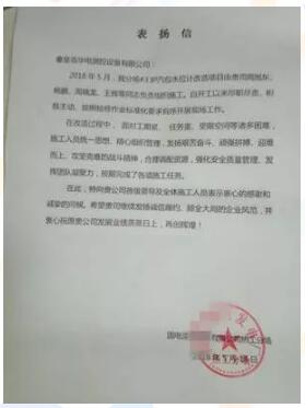 追求卓越,精益求精是每一個華電測控員工的行為準(zhǔn)則。此次改造過程中,我方施工人員獲得了電廠的來信表揚(yáng)。