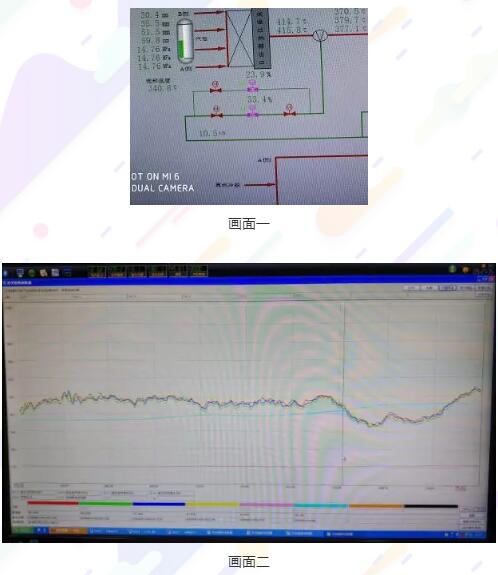 畫面一、畫面二為國電某熱電有限公司3臺內(nèi)裝平衡容器和1臺滿量程內(nèi)裝平衡容器在DCS顯示畫面(測量精度在20mm左右,高于國家行業(yè)標(biāo)準(zhǔn)):
