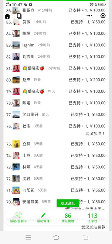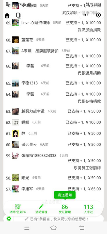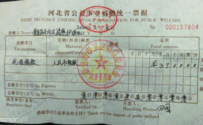 倡議發(fā)出后,得到了大家的積極響應(yīng),集團(tuán)員工、員工家屬、情感中心心理咨詢師、志愿者以及社會人士紛紛捐款,短短幾天共參與125人次,其中華控集團(tuán)黨支部、工會委員會募捐到6800元,情感中心募捐到3700元,共計(jì)募捐到了10500元。經(jīng)過大家的民主決議,我們將募集到的款項(xiàng)捐贈到秦皇島市應(yīng)對新型冠狀病毒感染的肺炎疫情工作領(lǐng)導(dǎo)小組辦公室提供的市衛(wèi)健委的賬戶上。