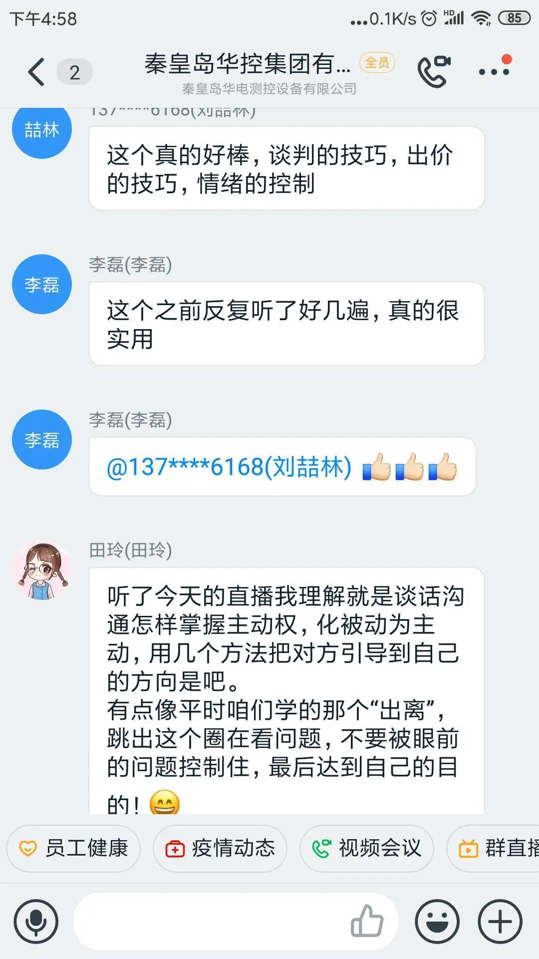 線上充電,勤修內(nèi)功,防疫不忘學習。線上培訓課程豐富,體驗感強,有收獲,有提升,線上沒聽懂的還可以觀看“直播回放”反復學習,溫故而知新,成效明顯。在人力資源部的引領(lǐng)下,大家線上積極交流培訓感悟。