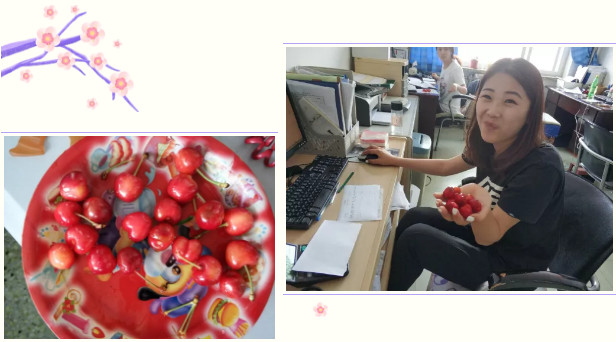 在這豐收的時刻,華控集團人資部開始櫻桃采摘,一顆顆誘人的櫻桃捧在手里,給我們帶來甜蜜的同時也帶來無限快樂。華控集團各部門收到了人資部辛勤采摘的果實,品嘗熟透的櫻桃,絲絲甜意,沁入心田。