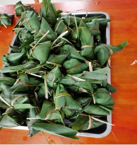 在大家齊心協(xié)力的共同努力下,滿滿一盤子粽子很快就包完了。真是驗(yàn)證了團(tuán)結(jié)就是力量這個(gè)道理。