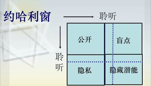 第二點,劉總談到約哈利窗,教練就是將公開區域擴大,最大限度的提高潛能。