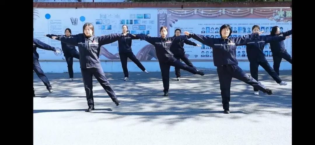 原來,是我們的美女員工們正在操練。看,身著筆挺工裝的她們還在為職工廣播體操展演做最后的準備。