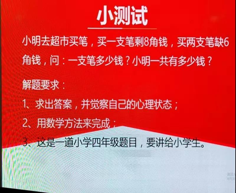 接下來(lái)是實(shí)戰(zhàn)環(huán)節(jié),劉老師通過(guò)一道小學(xué)四年級(jí)數(shù)學(xué)題,讓大家思考解題思路,如何讓孩子學(xué)會(huì)解題?
