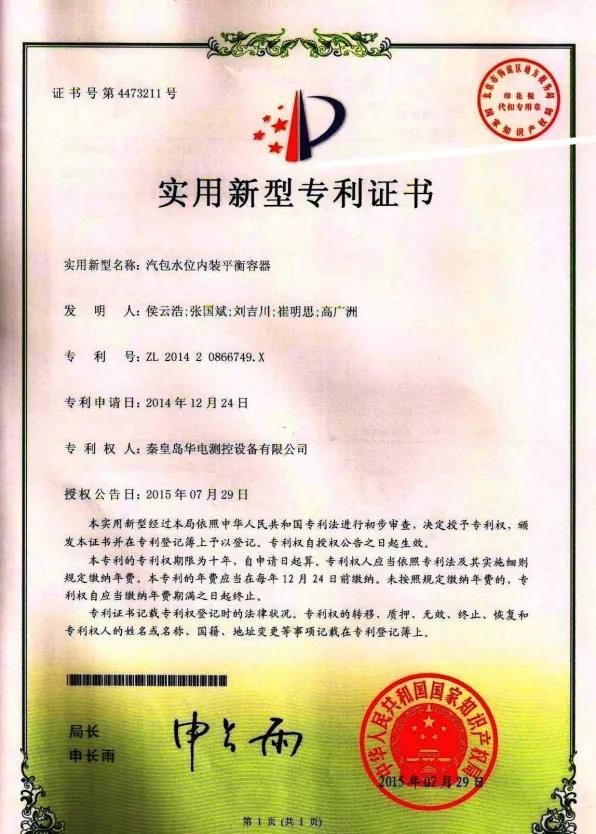 我公司中標的6套內裝平衡容器,型號HDSC-DNZ-2O,是我集團公司下屬秦皇島華電測控設備有限公司自主研發(fā)生產的專利產品(專利號:ZL201420866749.X),該產品自投入市場后,使用效果良好,水位測量精準,深受廣大用戶好評。