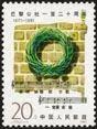 五一國際勞動節是全世界勞動人民團結戰斗的節日。在1889年巴黎召開的第二國際大會上,大會一致同意將每年的5月1日這一天設定為國際勞動節。該郵票是新中國為紀念這個節日發行的第四套紀念郵票。郵票畫面主圖為象征工農的錘子鐮刀組成的“5?1”兩字。這套郵票是第一枚郵票圖案上有樂譜出現的郵票。背景則是《國際歌》的樂曲片段及奔騰咆哮的滾滾黃河,象征著中國勞動大眾和全世界人民一起,將永遠為著實現共產主義的偉大理想奮斗終身。