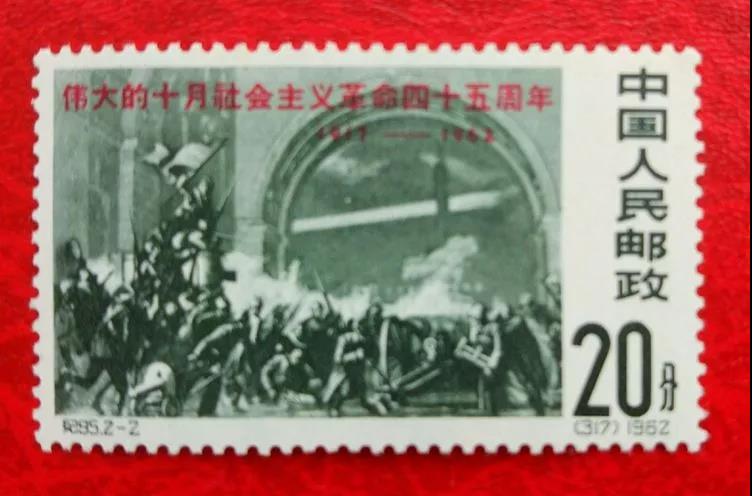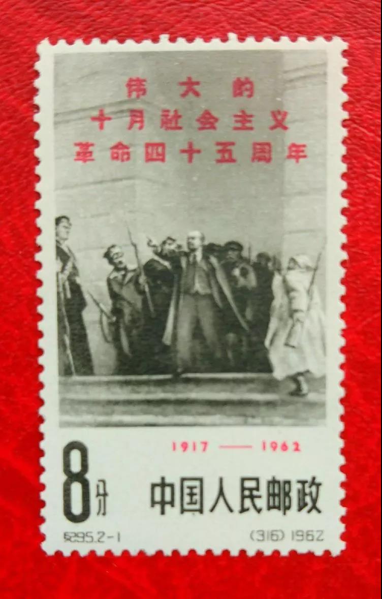 郵票記載歷史,郵票也在講故事。后來(lái),郵電部又在1962年11月7日發(fā)行了紀(jì)95《偉大的十月社會(huì)主義革命45周年》的紀(jì)念郵票,全套2枚。2-1為"列寧和衛(wèi)兵" 。畫面中間為列寧。2-2為"攻打冬宮"。畫面再現(xiàn)了1917年11月7日,在列寧領(lǐng)導(dǎo)下,彼得格勒工人和士兵舉行武裝起義,并向俄國(guó)臨時(shí)政府所在地--冬宮發(fā)起總攻,臨時(shí)政府最終滅亡。