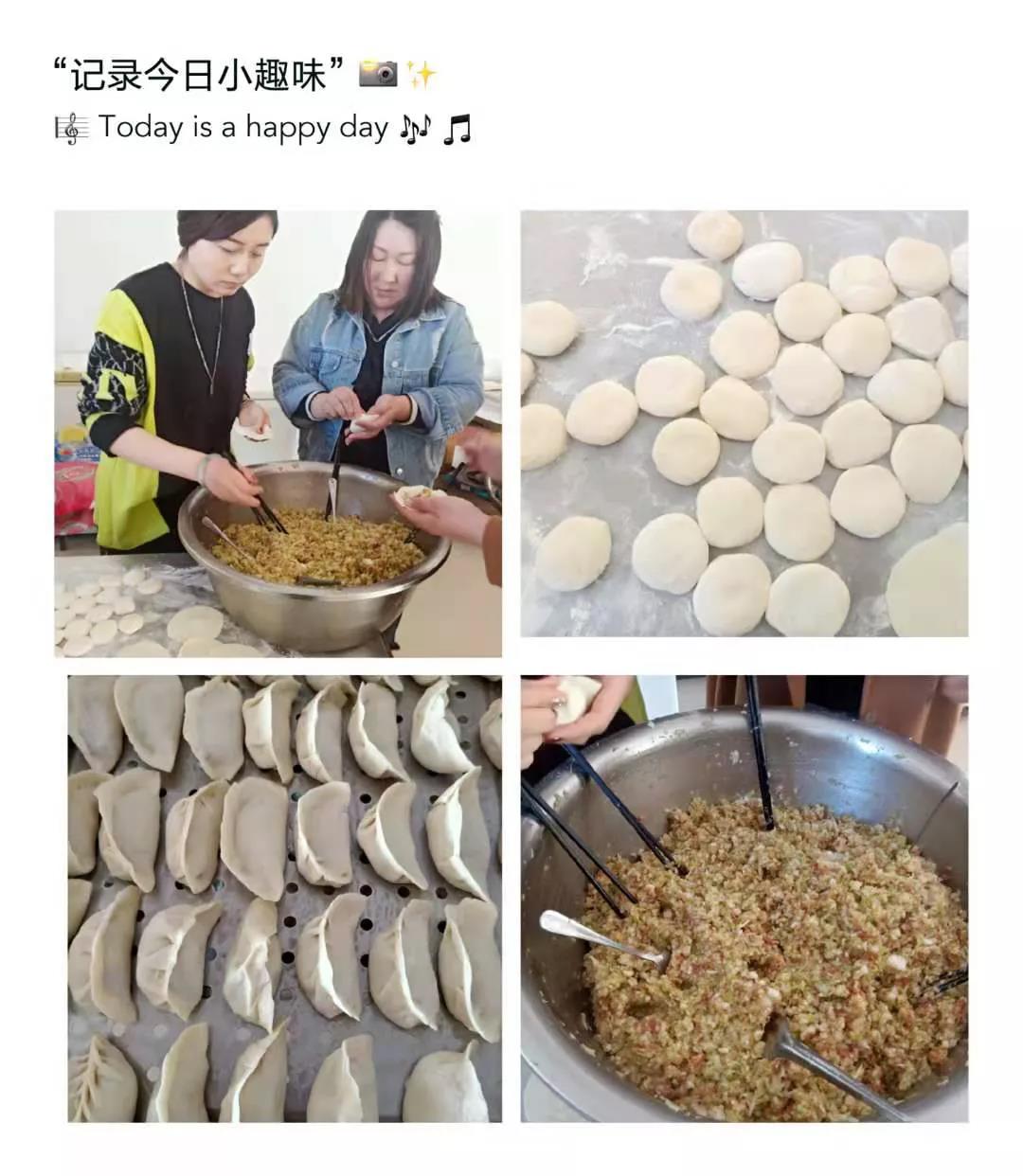 一大早食堂工作人員就把餃子餡、面團等材料準備好,等待大家的到來。8點40整大家準時到達食堂,開始了包餃子活動。大家分工協作,默契配合,各展所長,現場熱鬧非凡。我來揉面...我皮趕得好,我來給大家包個花樣餃子...大家邊包餃子邊交流,包出的餃子風格各不相同,有柳葉餃,有元寶餃,有荷葉膠...花樣繁多,大家邊包餃子邊交流,互相學習包餃子的技巧,整個食堂里充滿了歡聲笑語。