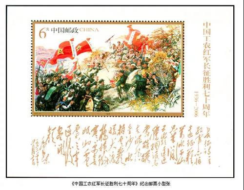 國家郵政局于2006年10月22日發(fā)行了《中國工農(nóng)紅軍長征勝利七十周年》紀念郵票1套4枚,小型張1枚。志號:2006-25。全套面值:3.20元。設(shè) 計 者:郝旭東。