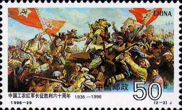 國家郵政局于1996年10月22日發(fā)行了《中國工農(nóng)紅軍長征勝利六十周年》紀念郵票1套2枚。