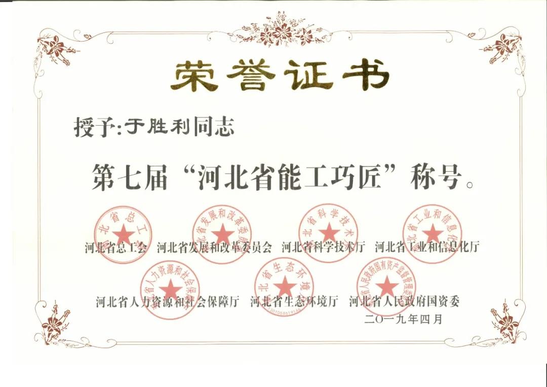 從剛參加工作的技術新人到擁有豐富經驗的“總工”,于勝利一路走來,經歷很多。作為一名共產黨員,他時刻不忘初心,時刻發揮黨員的先鋒帶頭作用,帶領班組成員提高創新研發技能,在崗期間,他主持研發的產品近五年已獲得兩項發明專利、兩項實用新型專利、一項美國發明專利,2016年榮獲第二屆“中國創翼”青年創業創新大賽銀翼獎,2017年被評為第五屆秦皇島市金牌工人,2018年榮獲河北省職工技術創新成果展演銀獎,2019年榮獲河北省第七屆能工巧匠稱號,2020年榮獲秦皇島市勞動模范等多項榮譽,對于未來于勝利有著更深的思考和奮斗的目標。