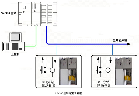 整套系統采用S7-300集中控制方式,共設置一個主站和六個就地控制柜。