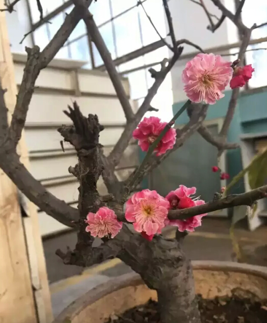 也許是工作的繁忙讓我經(jīng)常忽略周圍的環(huán)境變化,今天不經(jīng)意的一瞥,竟然發(fā)現(xiàn)了幾朵嬌艷的粉色?。?!那是保潔姐放在車間一盆不起眼的“干樹杈”,我走近一看,竟然冒出了好幾朵粉嫩的花,有的含苞待放、有的正在盛開,湊近一聞一股黯然凜冽的幽香撲鼻而來,沁人心脾。