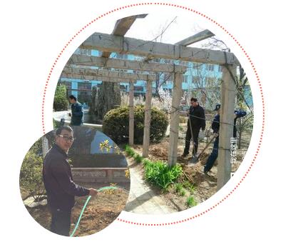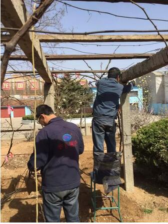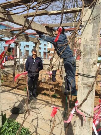 正值春暖花開、草長鶯飛之際,公司花園一派生機勃勃的景象,在公司黨支部書記兼副總經理劉劍鋒的帶領下,張勇清、尹新磊、劉冬建、任有志、張靜于周六下午來到公司進行葡萄架的搭建和培植,并翻土疏松,為樹木植被澆水。