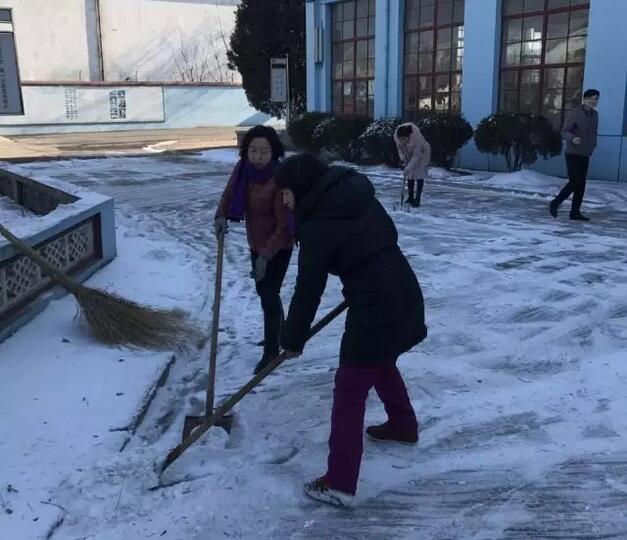 公司大院里陽光照射不到的地方,積雪還有很多,員工進進出出很不安全,1月9日上午管理部組織人員進行清雪,大家默契配合,很快就將路面清理干凈了,背陰的地方,天氣很冷,但是掃雪的熱情早已沖破嚴寒。質檢安全部經理劉慶明,不顧腰痛,也加入了我們,還有劉磊,因為他們的身體不好,被大家攔下了。