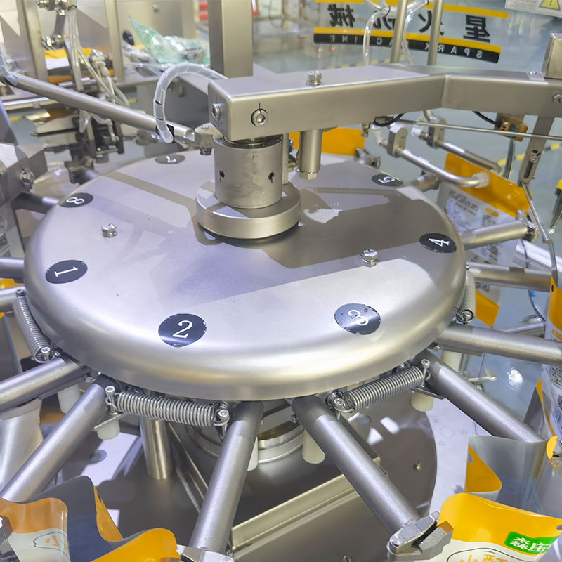 1、多工位集成作業,腌制雞肉片包裝機械集自動上料、稱重、制袋、充填、封口、沖孔、計數于一體化的設計,支持枕式袋、插腳袋、手提袋等多種袋型。
