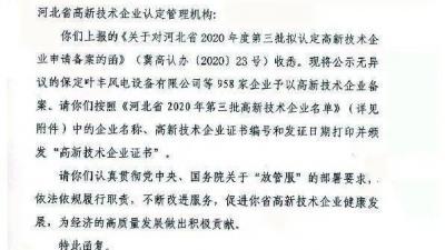 【企業動態】華電測控第六次通過高新技術企業重新認定” 2021-02-07近日,秦皇島華電測控設備有限公司收到了全國高新技術企業認定管理工作領導小組辦公室下發的《關于河北省2020年第三批高新技術企業備案的復函》(國科火字〔2020〕243號〕文件,公司第六次順利通過高新技術企業認定More